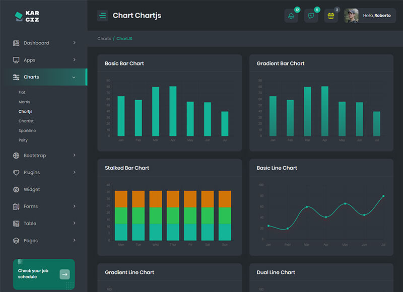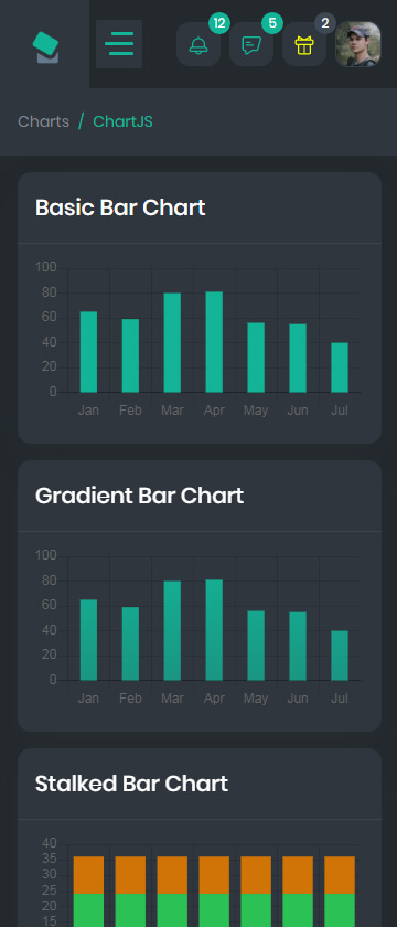 - Chart.Js, Flot Charts